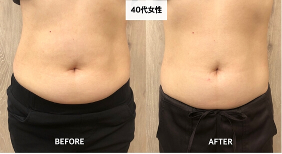 年代:40代/性別:女性/照射部位:お腹(※おへそ中心)/照射回数:30ショット/ワークアウト(60分/回):週1回3ヶ月間/料金(税込):278,000円