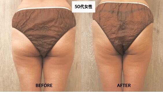 年代:50代/性別:女性/照射部位:お尻/照射回数:30ショット/ワークアウト(60分/回):週1回3ヶ月間/料金(税込):278,000円